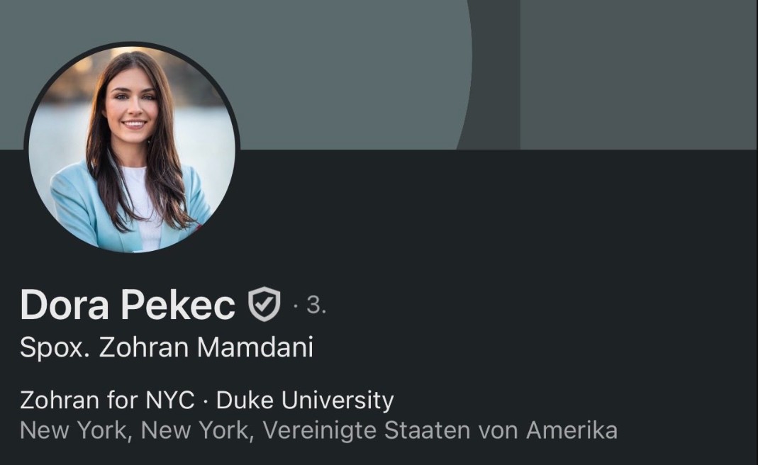 Dora Pekeč (25), porijeklom iz Hrvatske, portparolka je novoizabranog gradonačelnika New Yorka, Zohrana Mamdanija, prenosi Dnevnik.hr.