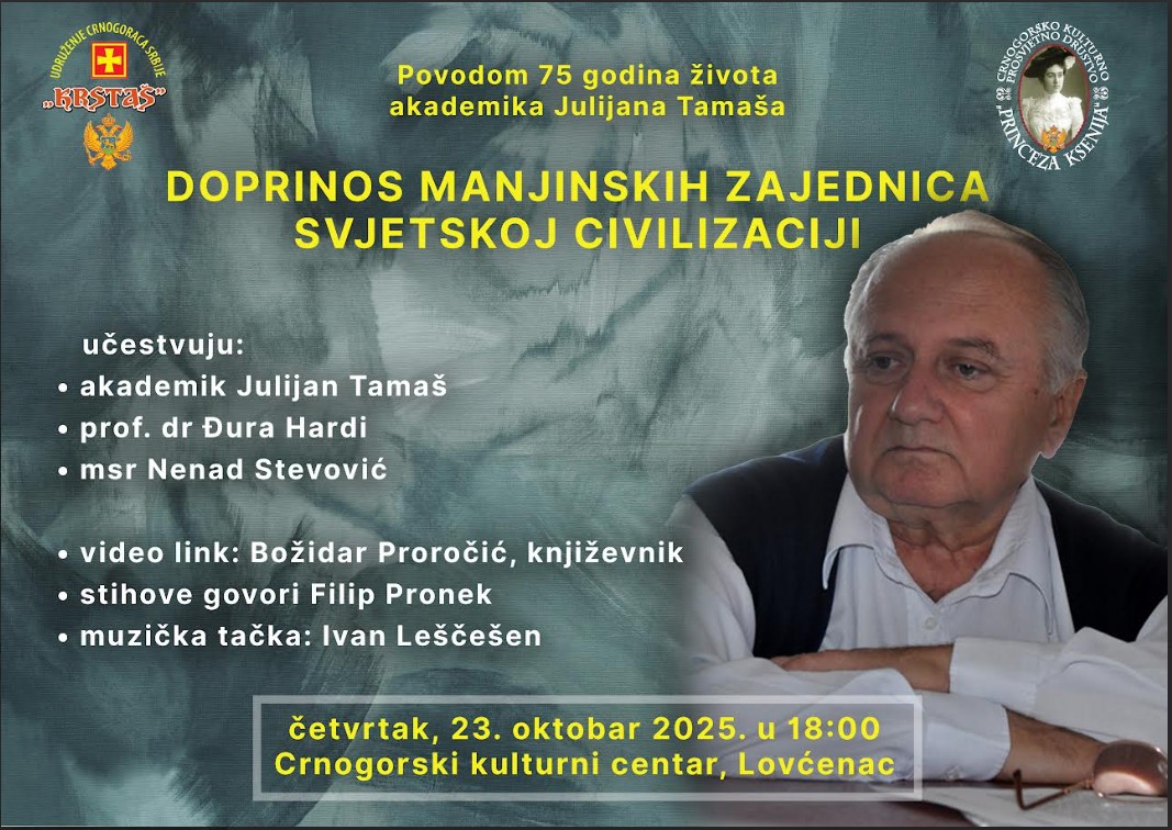 Autorsko književno veče akademika Julijana Tamaša pod nazivom „Doprinos manjinskih zajednica svjetskoj civilizaciji” održano je u Crnogorskom kulturnom centru u Lovćencu.