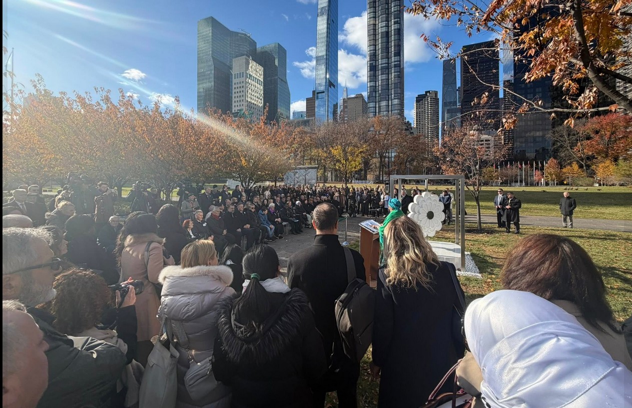 U blizini sjedišta Ujedinjenih nacija u Njujork, otkriveno je spomen-obilježje “Cvijet Srebrenice” kao spomenik žrtvama genocida počinjenog nad Bošnjacima u ljeto 1995. godine u Srebrenici.