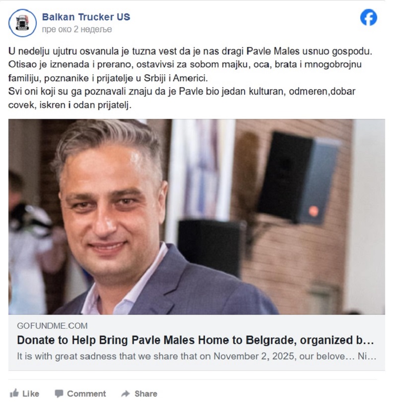 “Svi koji su ga poznavali znaju da je Pavle bio jedan kulturan, odmjeren, dobar čovjek, iskren i odan prijatelj”, navela je porodica na stranici GoFundme.