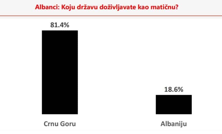 I kod Albanaca dominira identifikacija sa Crnom Gorom. Njih 81,4 odsto navodi Crnu Goru kao matičnu državu, dok 18,6 odsto kao matičnu vidi Albaniju.
