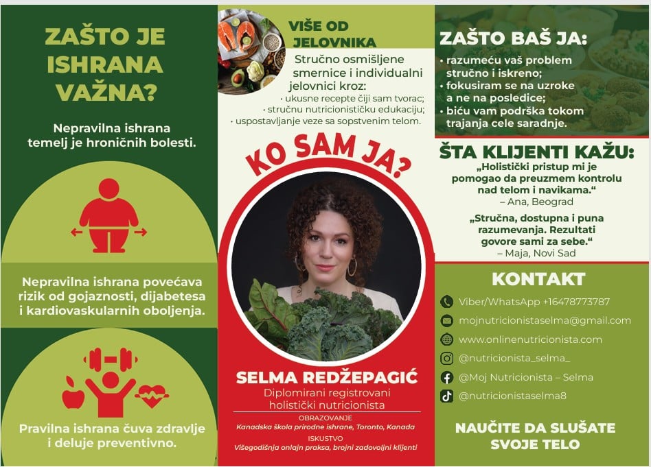 Preselila sam se 2013. godine i upisala studije nutricionizma u Kanadskoj školi prirodne ishrane. Moj izbor nije bio slučajan. Odrastanje u porodici u kojoj su hronične bolesti bile dio svakodnevice inspirisalo je moju radoznalost i potrebu da razumijem zdravlje na znatno višem nivou – ne samo kroz medicinsku dijagnozu, već kroz način života, ishranu i prevenciju. Posmatrajući koliko zdravlje utiče na kvalitet života cijele porodice i, nažalost, prerane odlaske, sve više me je privlačila ideja da razumijem kako se kroz znanje može doprinijeti očuvanju i unapređenju zdravlja kao cjeline.