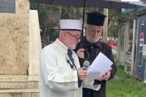 Sveštenik kišobranom štitio imama dok je držao govor: Video koji je obišao region (VIDEO)